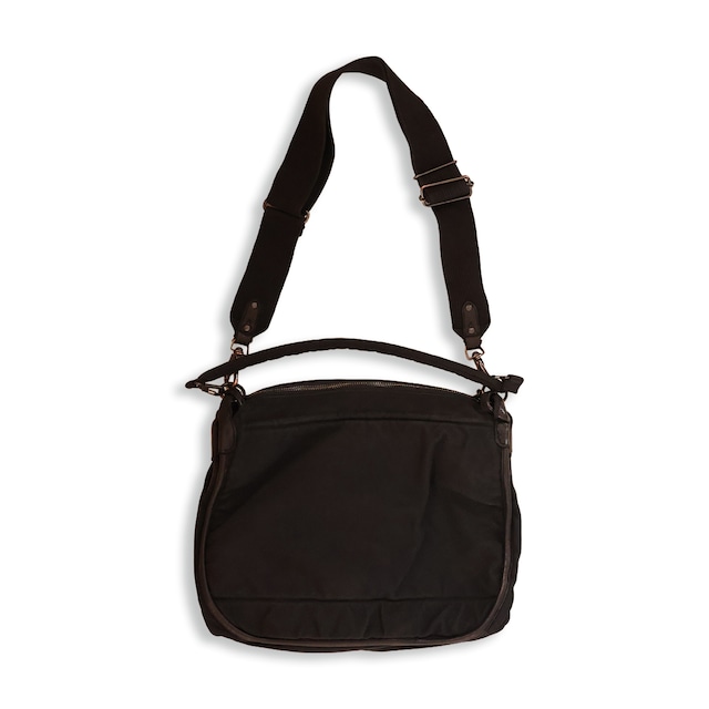 DESIGN -13incのPCが収納可能 -肩掛けと手持ちと2wayの仕様。 -3つに分かれたボディ -製品染め加工 -吉田カバン製 SIZE(約) W 350mm / H 300mm / D 185mm 個体差がある為、参考寸法としてください MATERIAL cotton 100%,cow leather